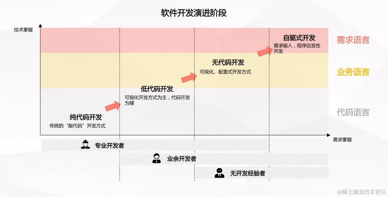 低代码是一组数字技术工具平台,能基于图形化拖拽、参数化配置等更为高效的方式,实现快速构建、数据编排、连接生态、中台服务等。通过少量代码或不用代码实现数字化转型中的场景应用创新。它能缓解甚至解决庞大的市场需求与传统的开发生产力引发的供需关系矛盾问题,数字化转型过程中降本增效趋势下的产物。