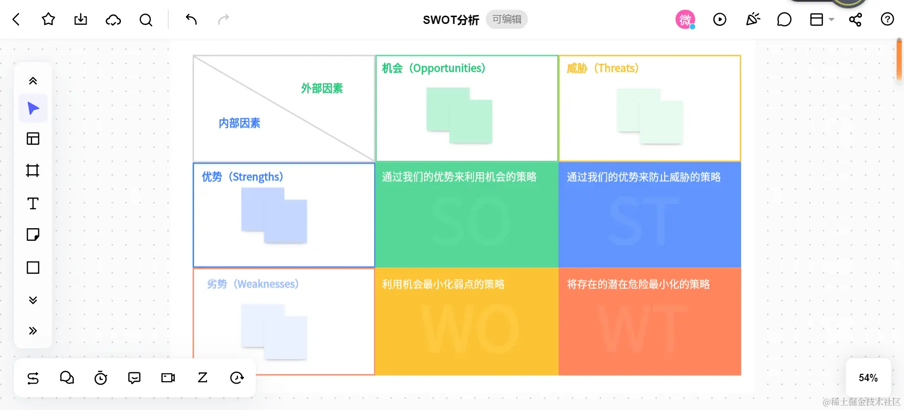 S(Strengths)优势、W(Weaknesses)劣势、O(Opportunities)机会、T(Threats)威胁