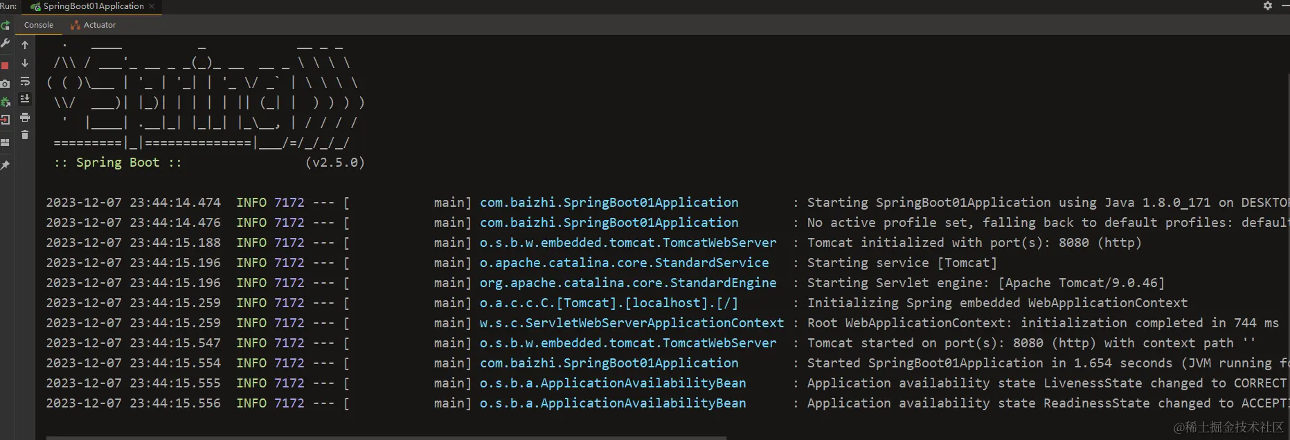 - 在resources下添加application.yml文件后,即可启动springboot应用