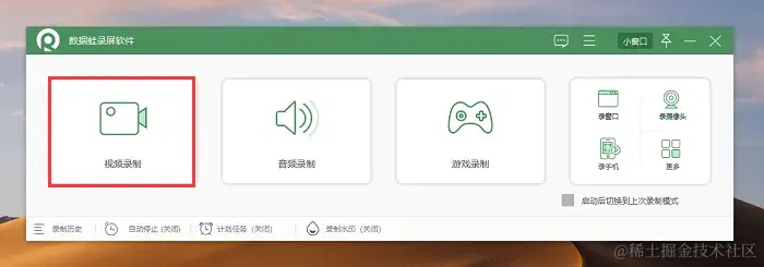 步骤1:访问数据蛙录屏软件官方网站,下载并安装该软件,打开它进入主页,在这里您可以看见很多录制模式,录制电脑屏幕推荐使用视频录制模式。