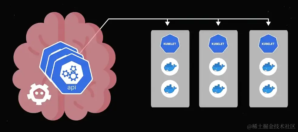 部署在 Kubernetes 上的系统称为集群。操作的大脑称为控制平面。它公开了一个 API 服务器,可以处理内部和外部请求来管理集群。