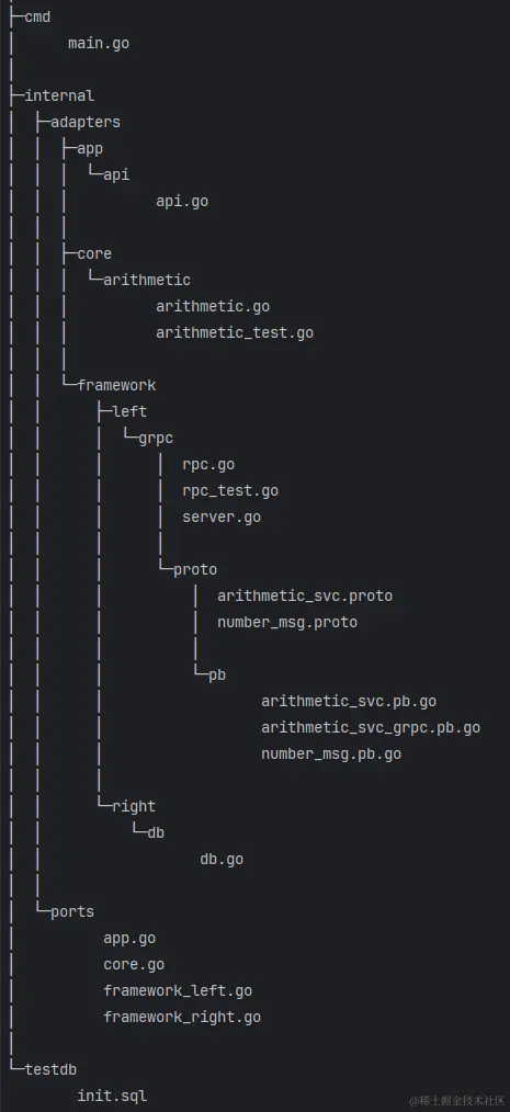 我们在cmd文件中创建一个main.go:连接所有端口和适配器代码的地方,将依赖项注入到需要的层中,例如将数据库注入到framework层