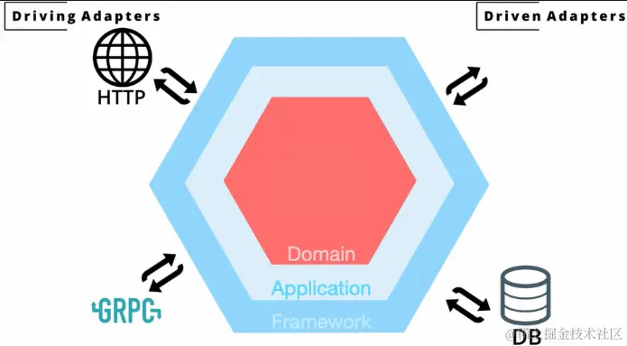 最近在想着写一个个人项目,但是在项目的结构上却犯了难,此时翻到了一个视频,采用Hexagonal architecture(六边形架构),也被称为Ports and Adapters,大致就是下面图片的结构: