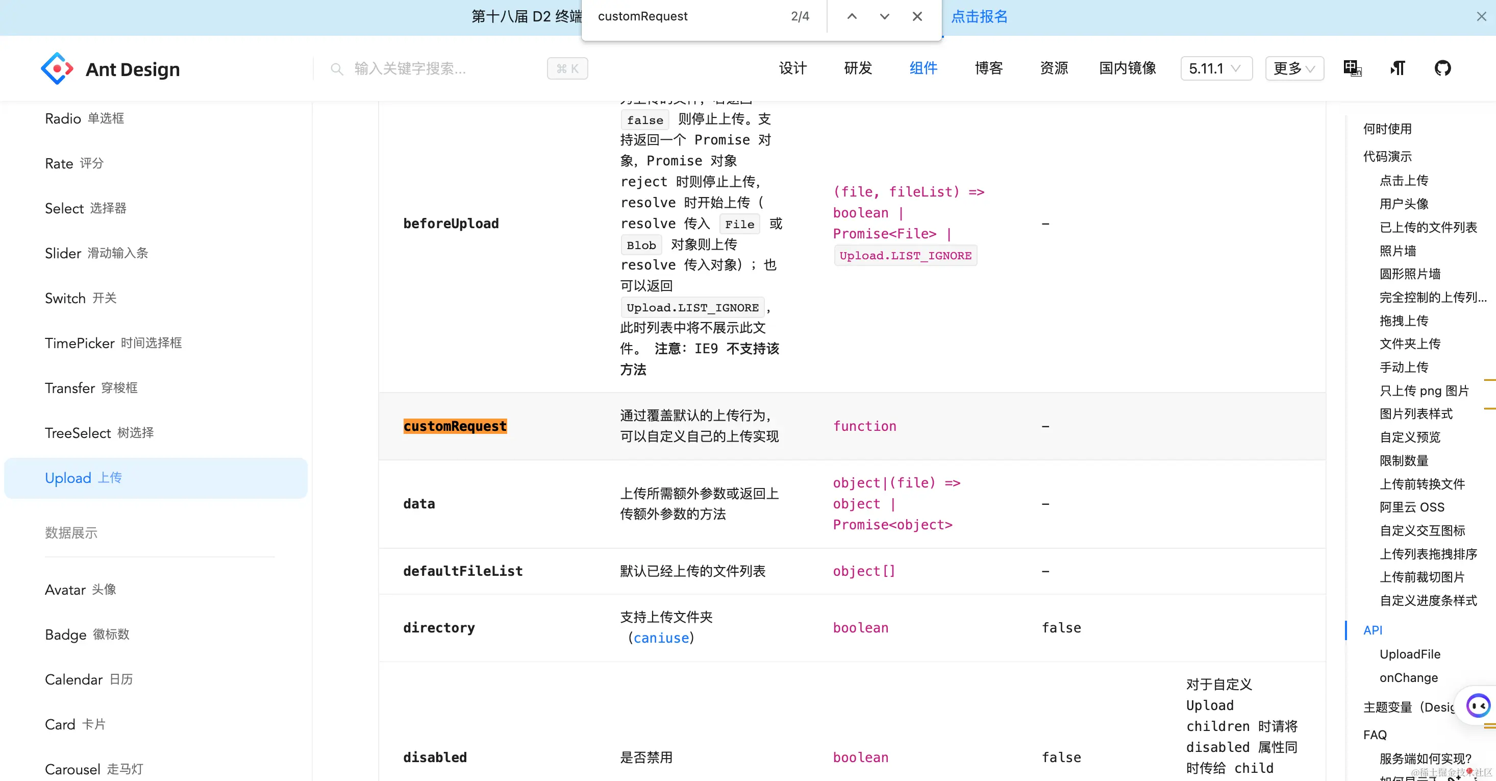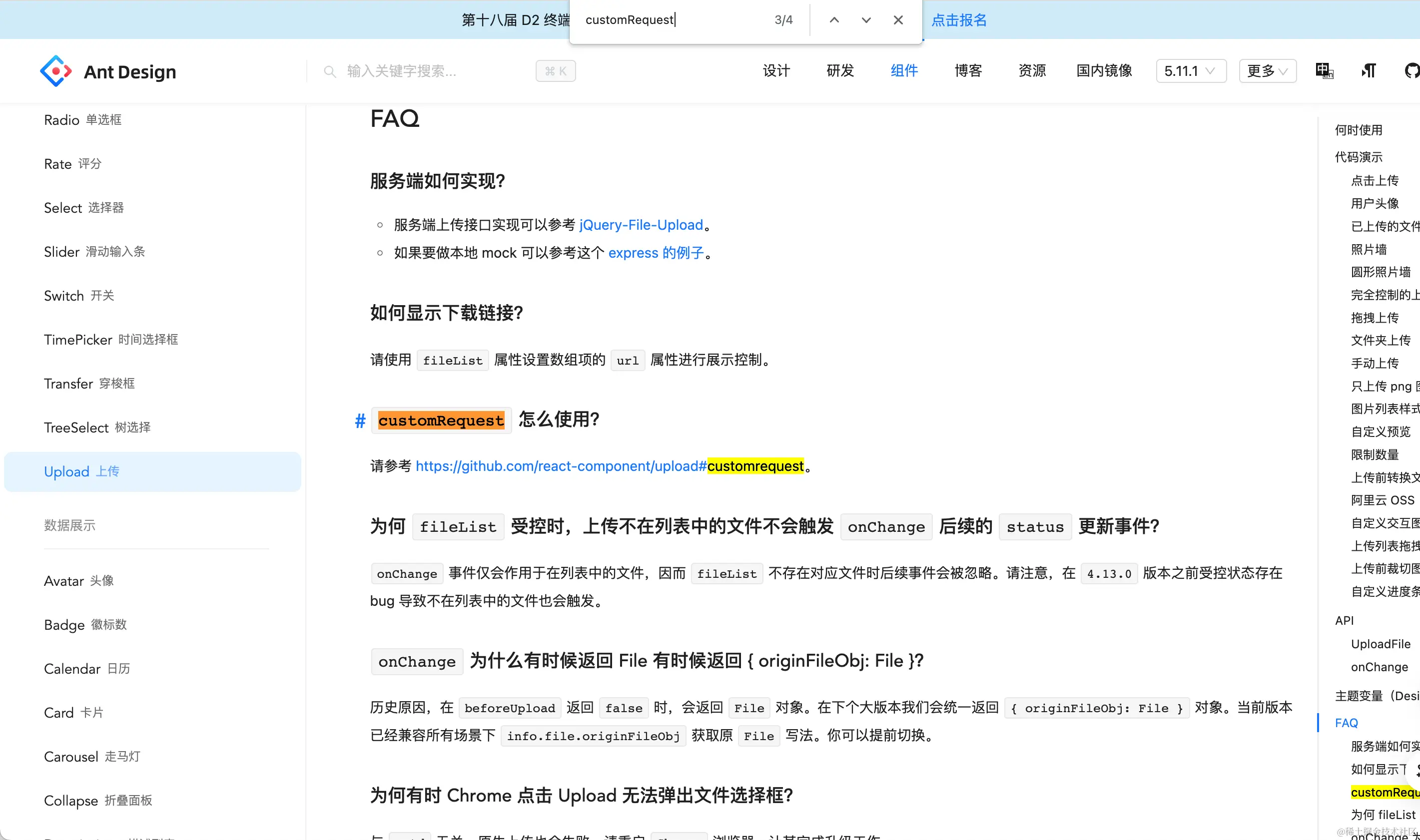 配置action属性就要单独走请求和错误处理, 超时时间之类的 , 而customRequest官方文档上没有直接给demo,所以当时的处理是通过beforeUpload和onChange实现上传, 既没有配置action,也没有自定义customRequest