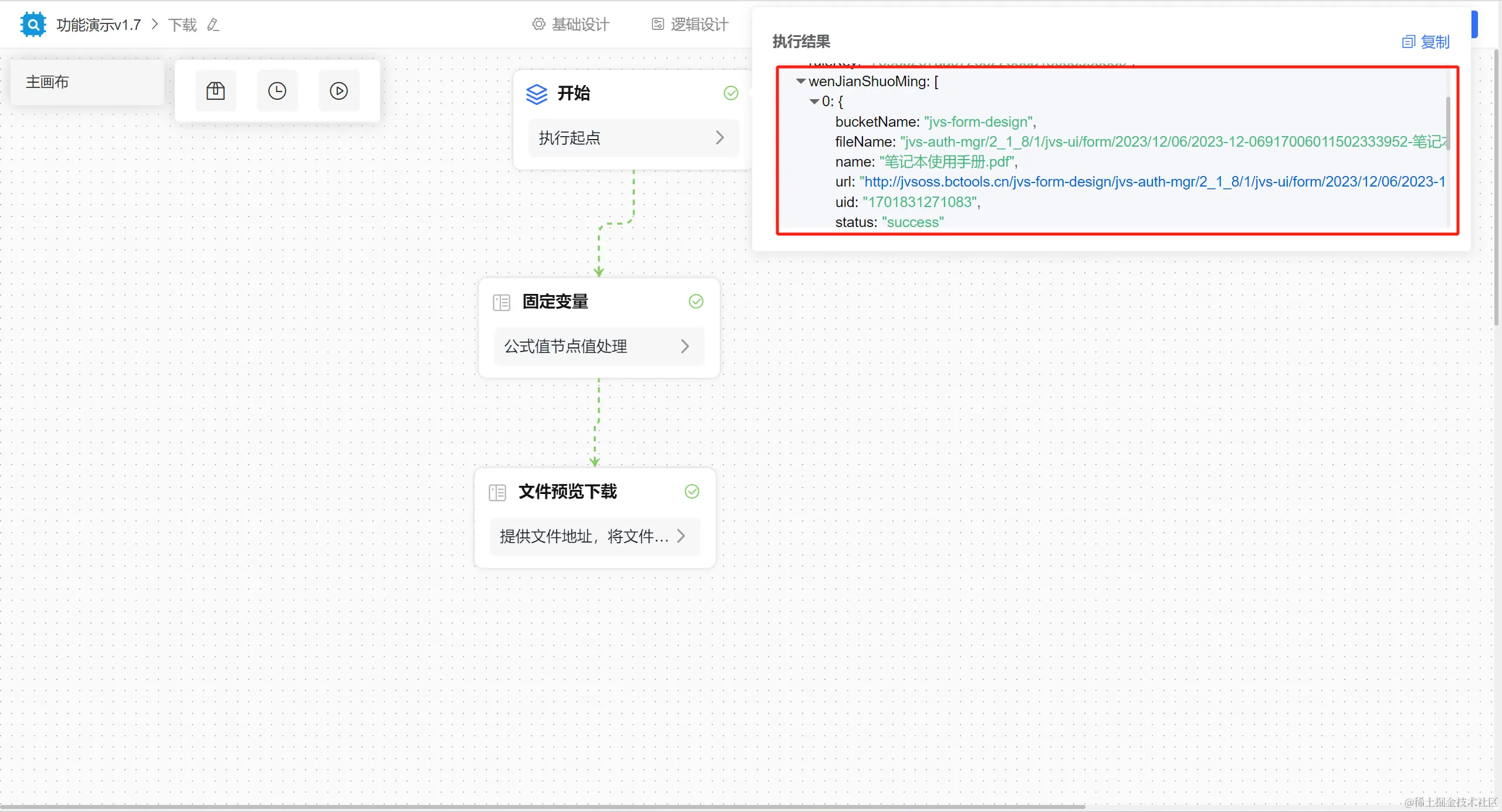 ②:文件预览下载节点,通过获取【固定变量】节点的值直接配置。