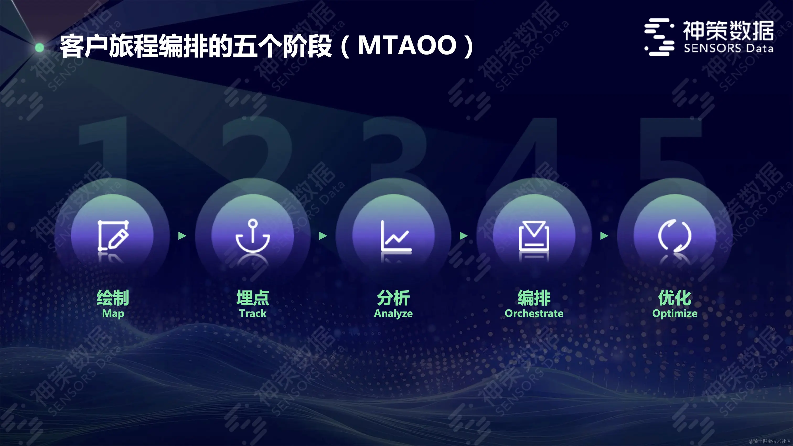 客户旅程编排理念的核心就是如何为客户提供全渠道统一的用户体验,提升客户的满意度,提升整体运营效率。围绕CJO的理念,神策数据抽象出了MTAOO方法论。