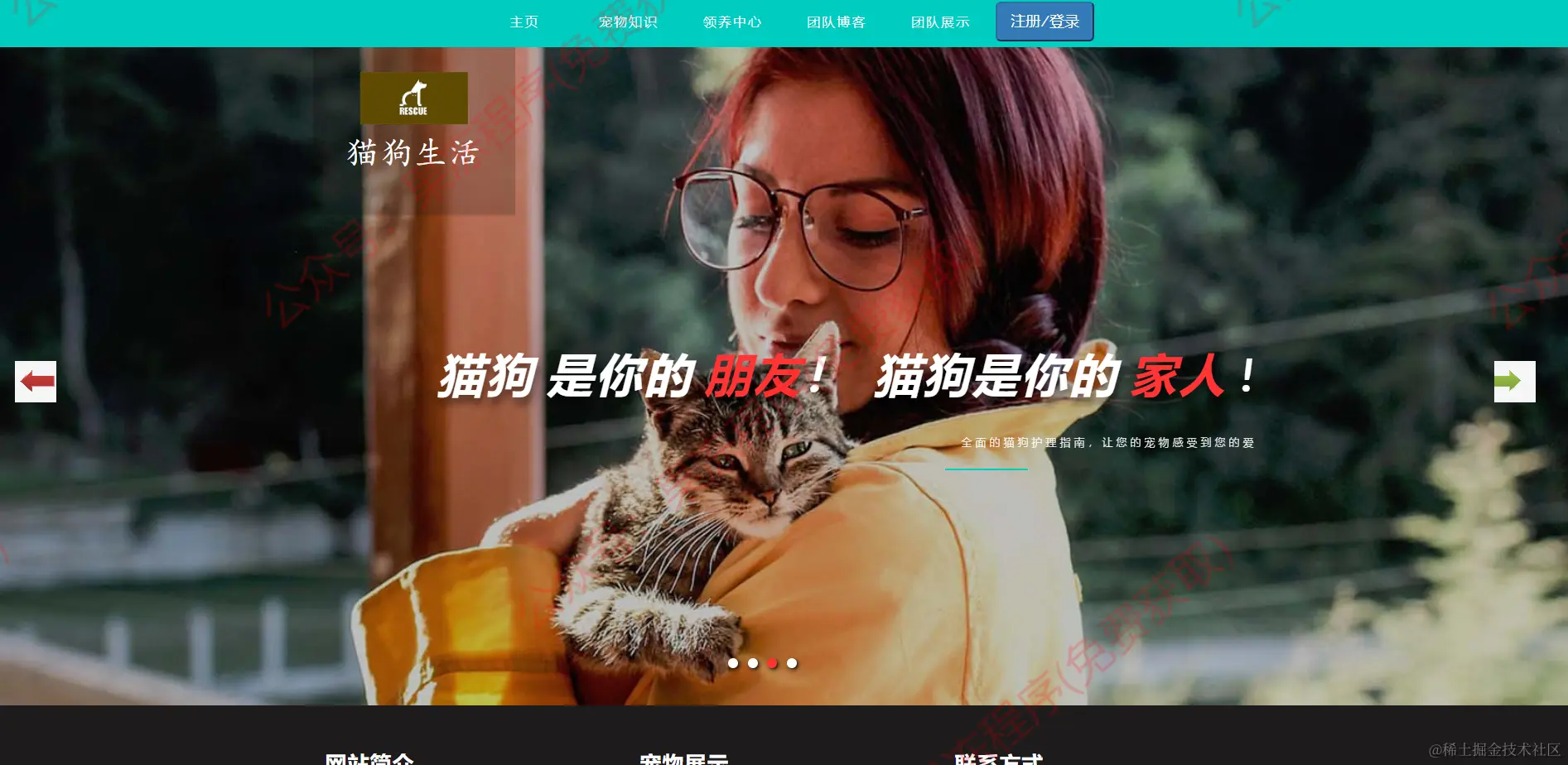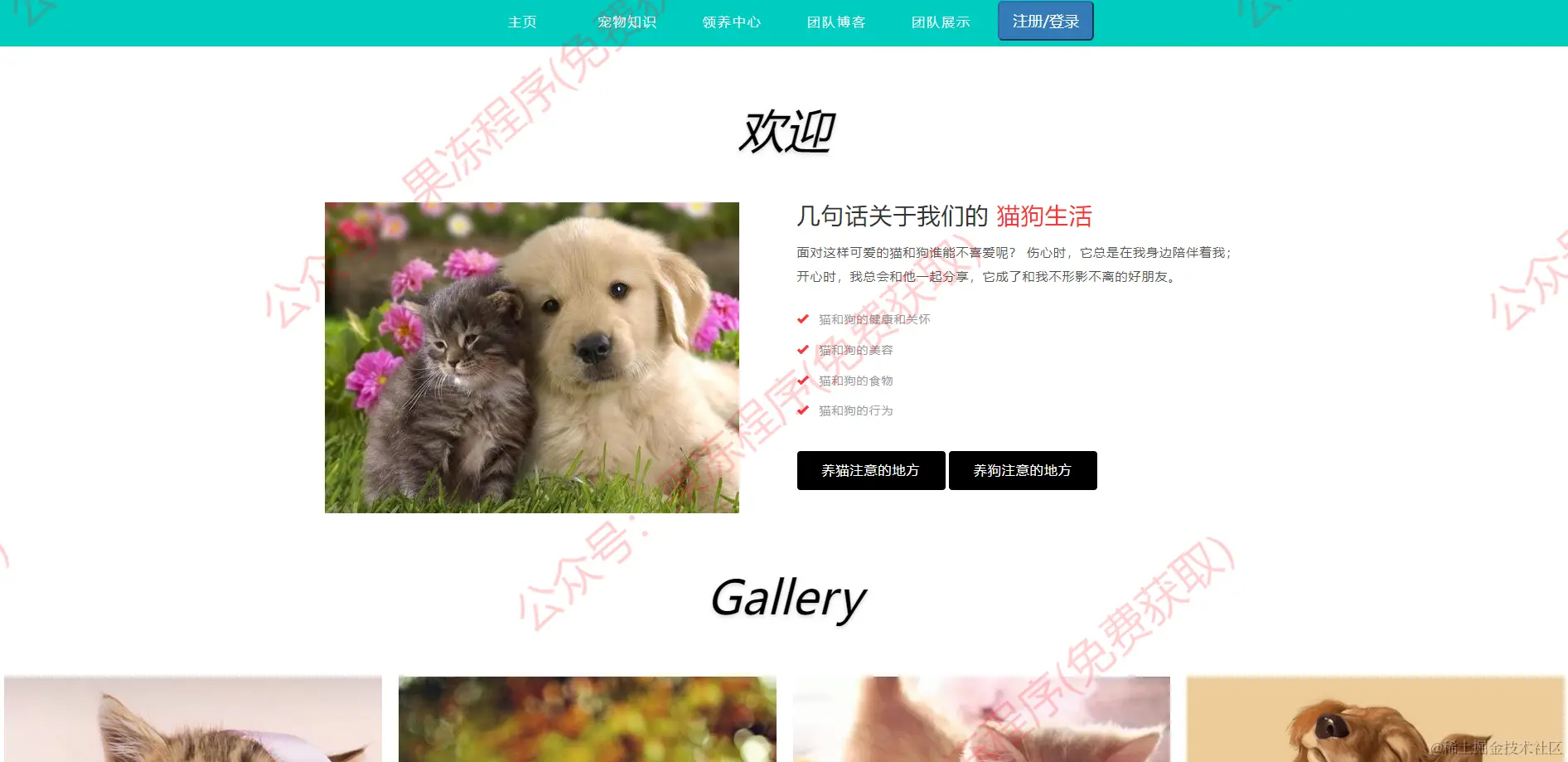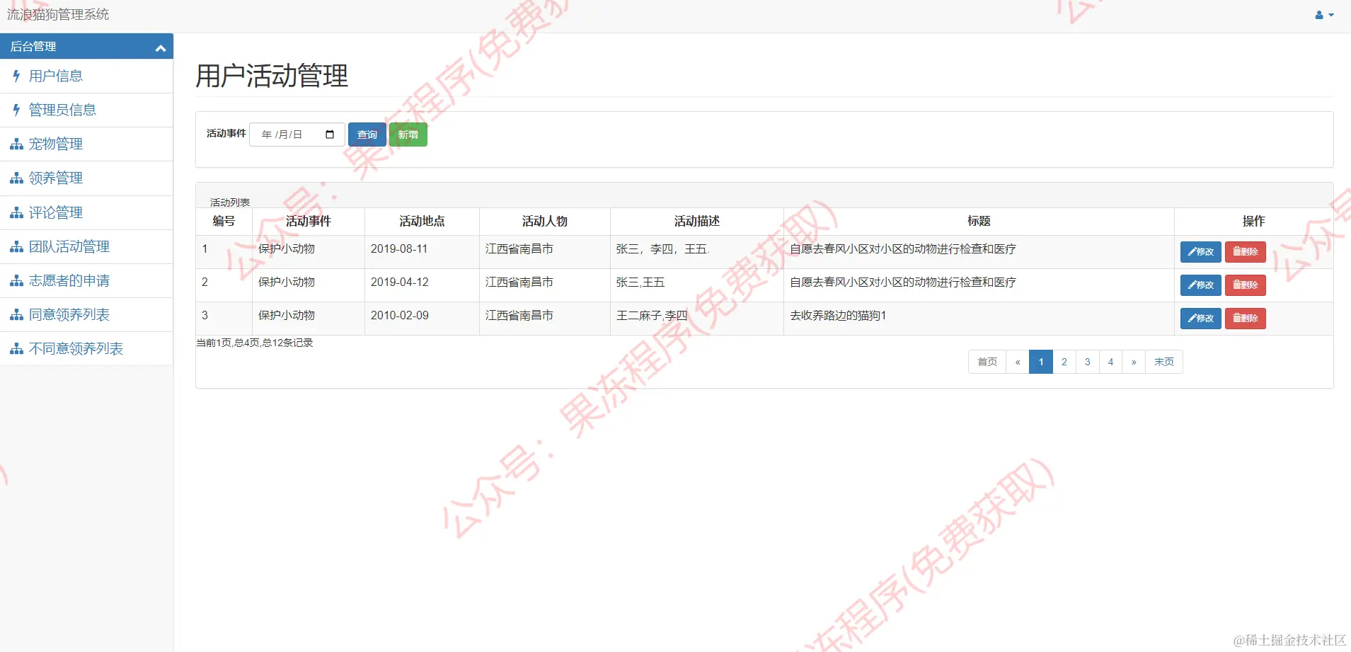 该项目是一个宠物领养系统,页面分为前台首页和后台管理,具体功能菜单如下: