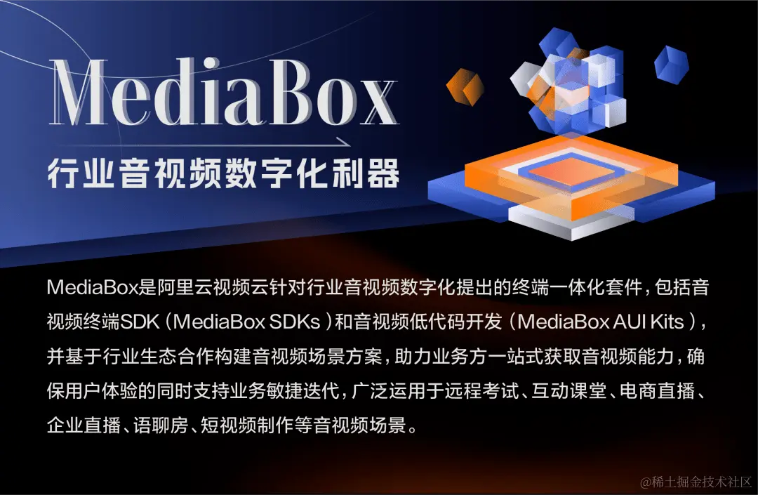 针对行业音视频数字化,阿里云视频云提出了MediaBox终端一体化套件,融合了播放、直播、超低延迟直播、实时音视频通信、短视频创作等多种音视频能力,但这并非简单地把SDK叠加起来,而是通过合理的架构设计、抽离复用各种基础组件等手段,最终构建出一个高性能、高可用、高灵活性、可插拔、易扩展性的一体化SDK。