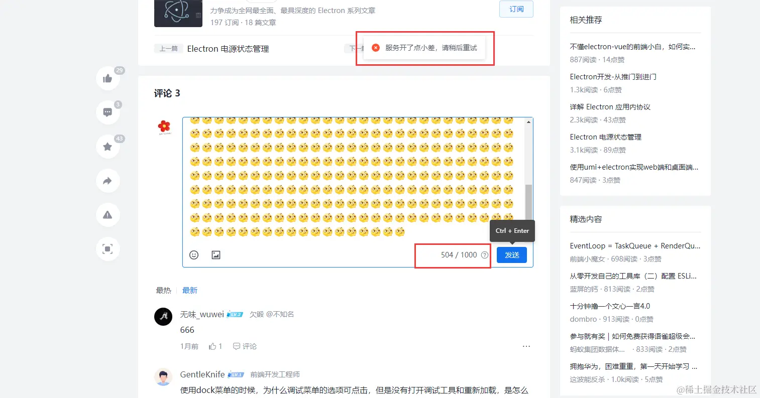 掘金的表情回复BUG
