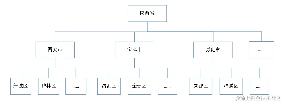 层次化结构可以理解为树状数据结构,由节点构成。举个简单的例子,如下图所示,由子节点向上查询根节点,或者由根节点遍历所有子节点: