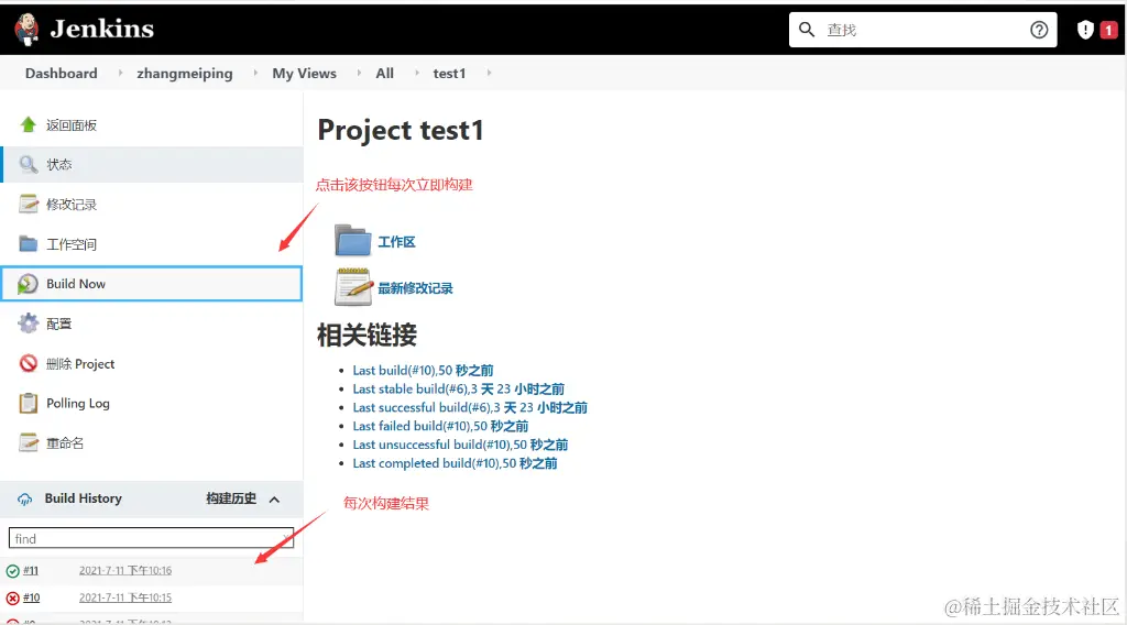 5、查看Jenkins中项目运行结果(绿色表示通过,红色表示失败)