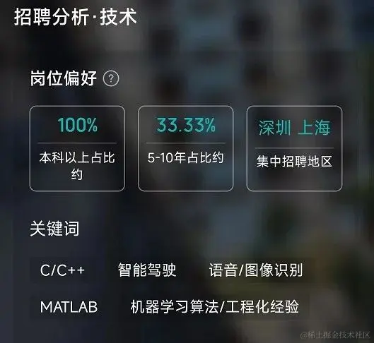第一眼扫过去看到信息是:100%的本科学历,5-10年工作经验的占比1/3, 重点岗位地点:深圳/上海。