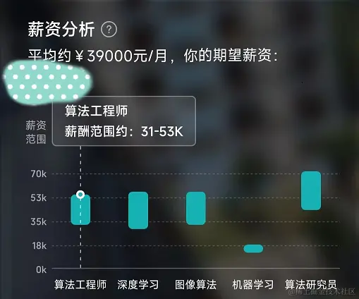 上图的薪资范围,机器学习岗位算是里面薪资最低的,基本在 20k以下。