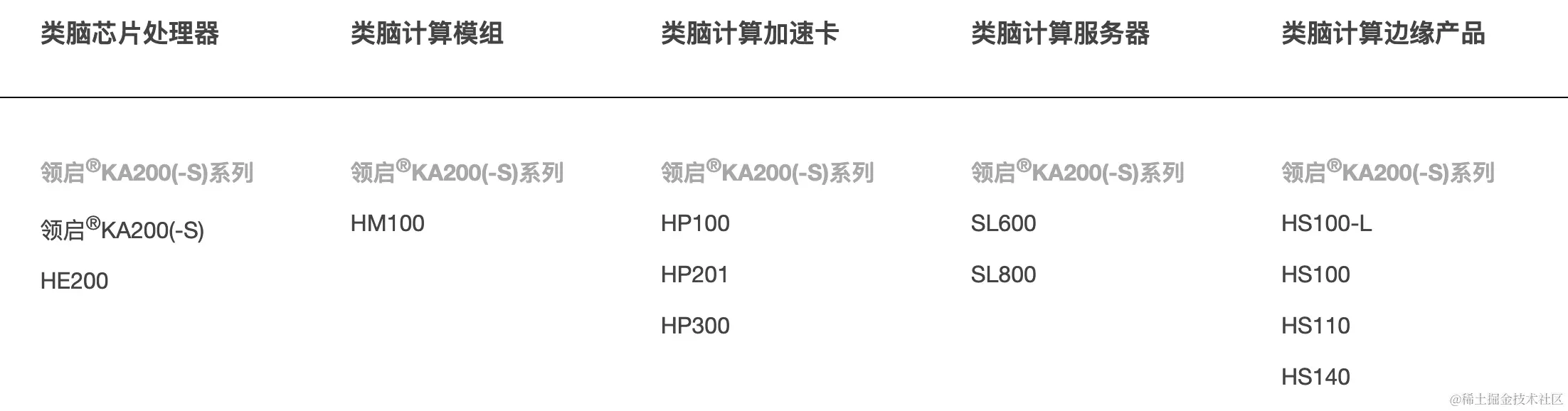 对于类脑芯片处理器级,就是指的领启 KA200(-S) (而 HE200 是基于领启 KA200(-S) 的开发板),类脑芯片领启 KA200(-S) 基于全新的存算一体、众核并行、异构融合架构,能高效支持深度学习神经网络、生物神经网络和大规模脑仿真。单芯片集成 25 万神经元和 2500 万突触 (稠密模式),可扩展支持 200 万神经元和 20 亿突触的集成计算 (稀疏模式),支持混合精度计算 (48 TOPS@INT8 和 24 TFLOPS@FP16)。不得不说,类脑芯片的硬件概念真的和现在传统的芯片不太一样,但是算力层面的数据还是可以对比的。那么领启 KA200(-S) 的算力到底是个什么水平呢,英伟达 Jetson NX 算力 21 TOPS@INT8,英伟达 Jetson AGX Xavier 算力 32 TOPS@INT8,英伟达 Tesla T4 算力 130 TOPS@INT8。好像、似乎真没有直接对标的,但考虑到灵汐从芯片架构层面就是颠覆性的,对标个啥,另辟蹊径就好啦。