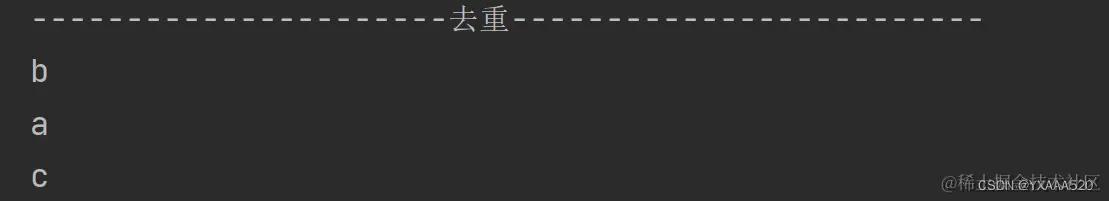 System.out.println("----------------------去重-------------------------");