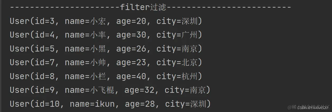 users.add(new User(8L,"小栏",40, "杭州"));