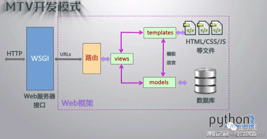 说flask之前,就先聊聊flask的开发模式---MTV开发模式: