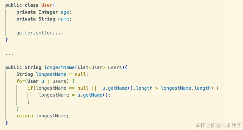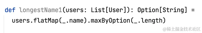 Java 编程获取 User 列表中最长的名字,需要注意判断空,容易出错。而在 Scala 中,我们可以使用函数式编程方式,避免出现没有判空的错误。