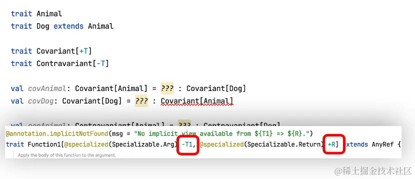 Scala 编译器通过协变(Covariance)和逆变(Contravariance)来实现上述例子中的的类型安全,这也是为什么 Scala 比 Java 类型系统强大的一个原因。