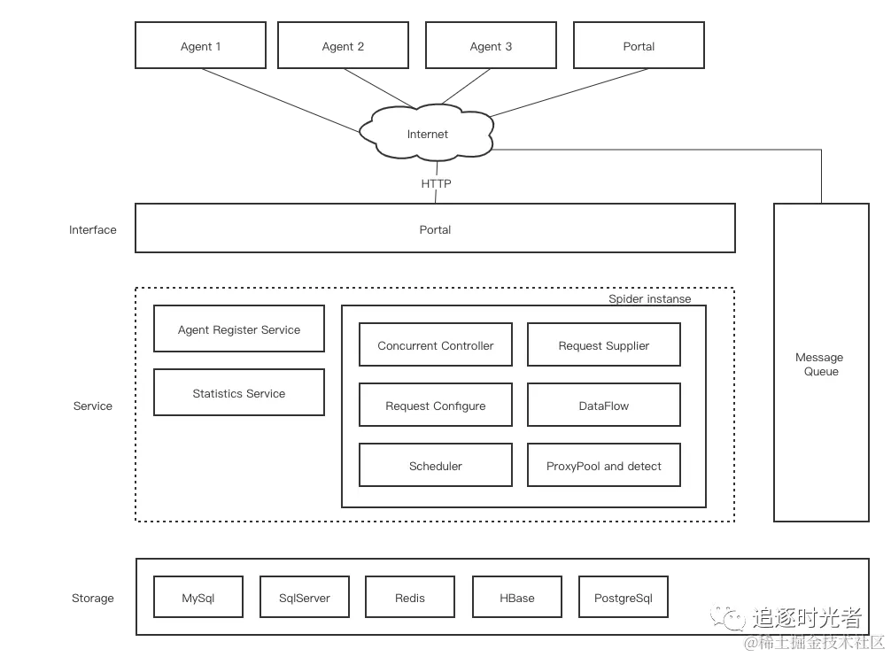 整个爬虫设计是纯异步的,利用消息队列进行各个组件的解耦,若是只需要单机爬虫则不需要做任何额外的配置,默认使用了一个内存型的消息队列;若是想要实现一个纯分布式爬虫,则需要引入一个消息队列即可,后面会详细介绍如何实现一个分布式爬虫。