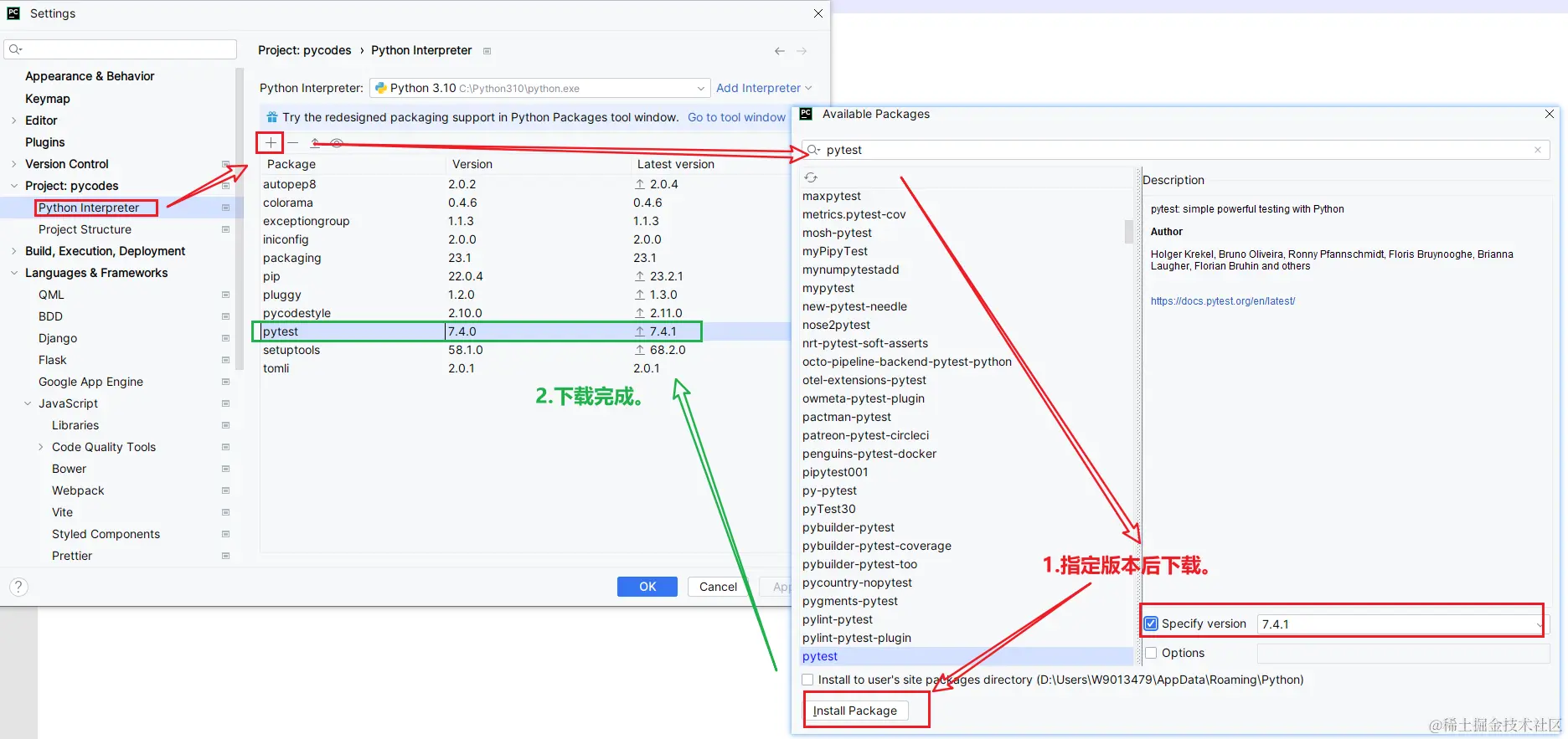 - 通过IDE 安装 pytest: