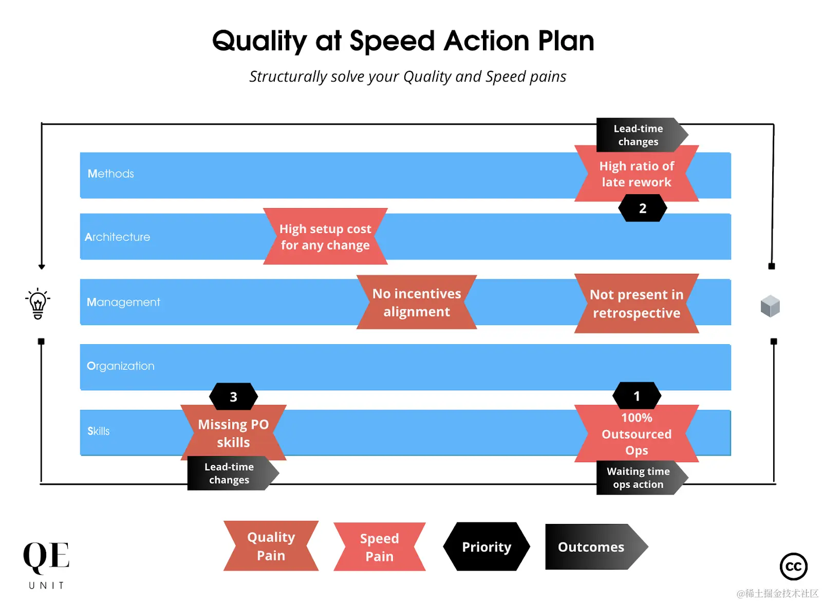 目标是识别软件生产系统中最重要的质量和速度问题。不是所有问题都很重要,有些是原因,而有些是结果。