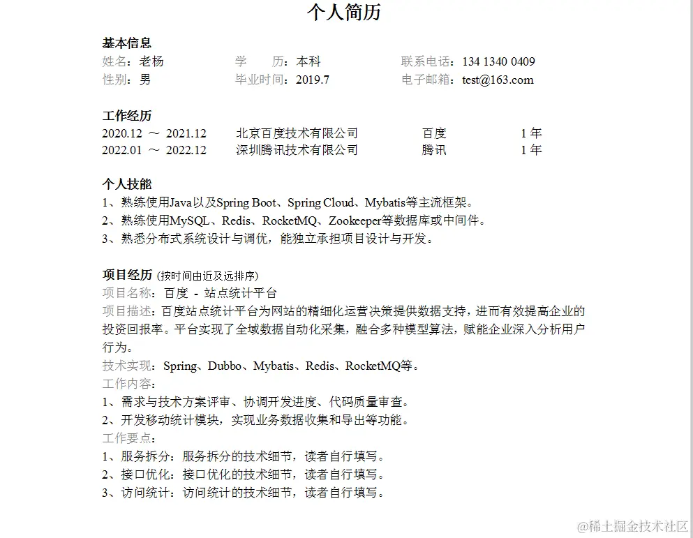 推荐一款简洁的简历模版,这套模版压缩了次要信息,重点突出项目经历,网盘下载地址: pan.baidu.com/s/1tuA0No_a… 。