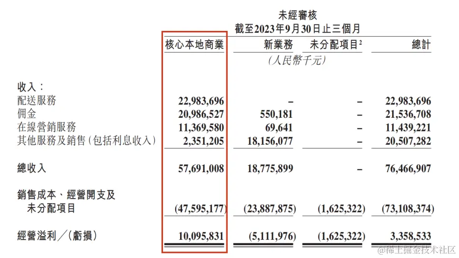 即便美团的市场份额很高、营收规模也在增加,但新业务就是不赚钱,一直在拖后腿。2020-2022年,新业务分别亏损108.55亿元、383.94亿元和284亿元,今年三季度该业务的营收为188亿元,增幅仅为15.3%,继续实现亏损,达-51.1亿元。