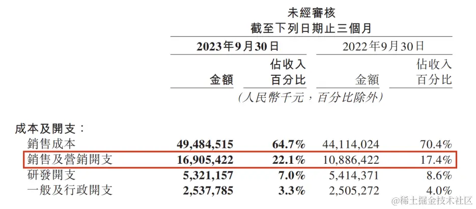 一方面,美团加大推出了包括降低年费、与商家重新协商抽佣率等措施来换回商户流失,而且还加大对线上营销方面的真金白银投入。财报数据显示,今年三季度美团的销售及营销开支由去年同期的108.86亿元增长55.3%至169.05亿元,占收入比重由17.4%增长至22.1%。