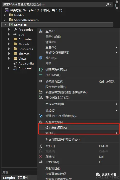 设置Samples为启动项目: