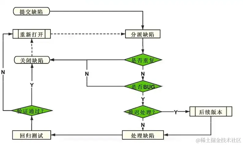 设计用例->执行用例(执行测试)->缺陷(提交,验证,关闭)