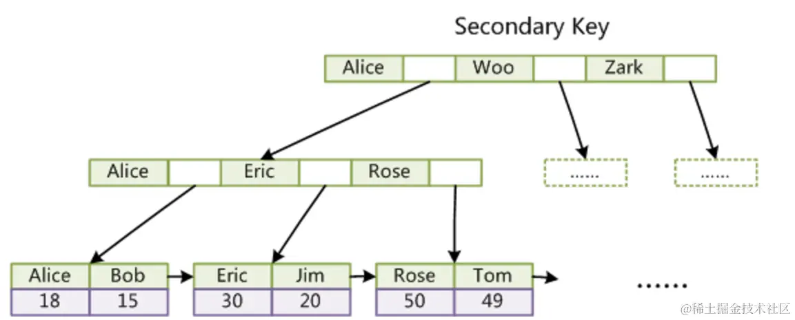聚集索引这种实现方式使得按主键的搜索十分高效,但是辅助索引搜索需要检索 2 遍索引: