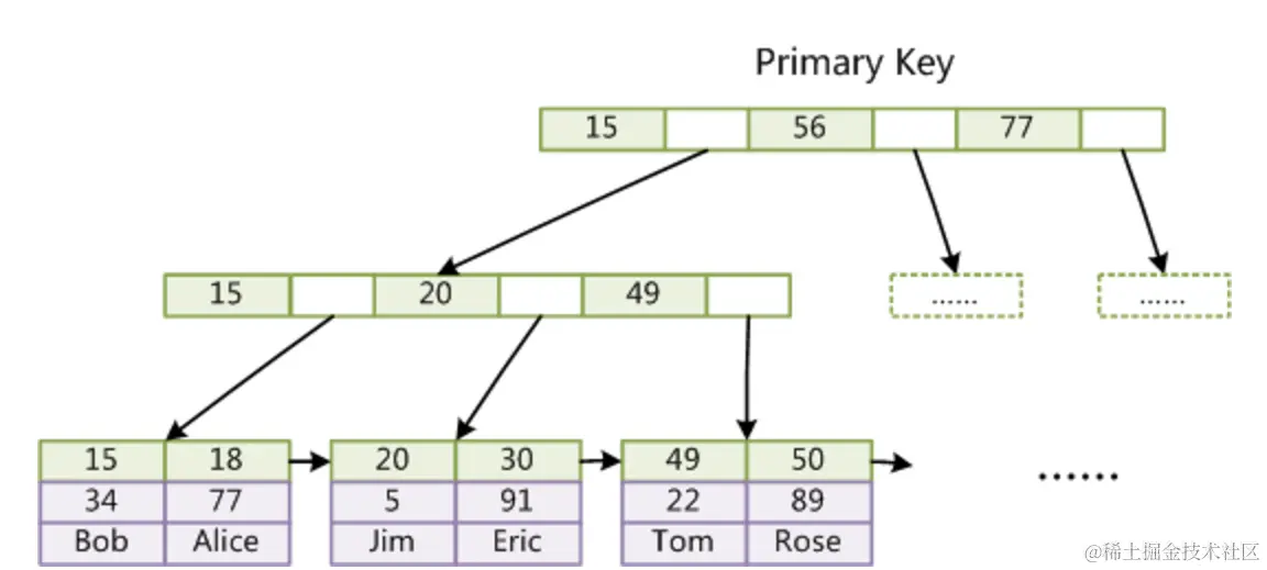 上图是 InnoDB 主索引(同时也是数据文件)的示意图。可以看到叶子节点包含了完整的数据记录。