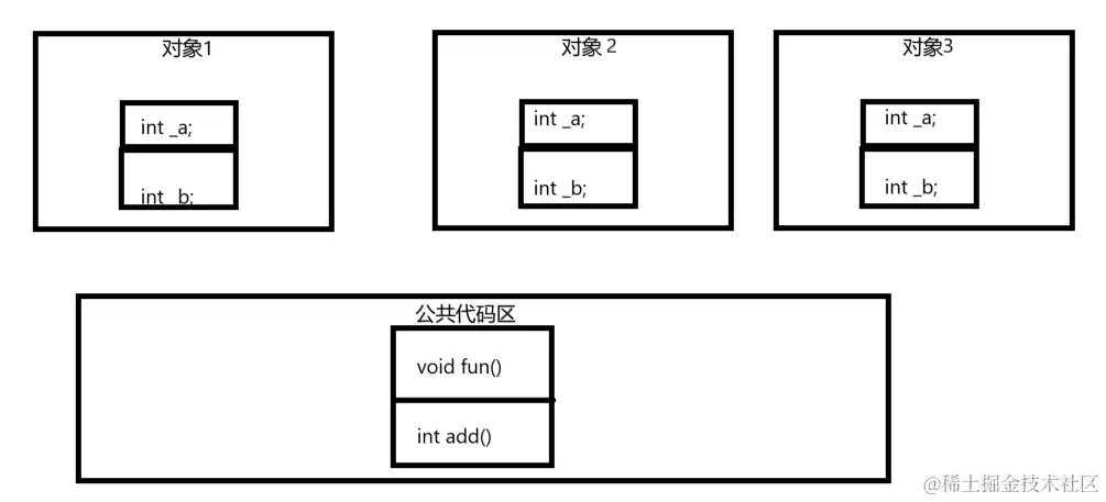 //分析:既然已知猜想1,2均不成立,那类里面不应该是空的吗,sizeof(A2)和sizeof(A3)的大小不应该都为0吗?其实空类比较特殊,编译器给了一个字节来唯一表示这个类的对象。这里注意:类里有函数,但是没有成员变量的类,也算是空类,也会用一个字节来唯一表示该类的对象。