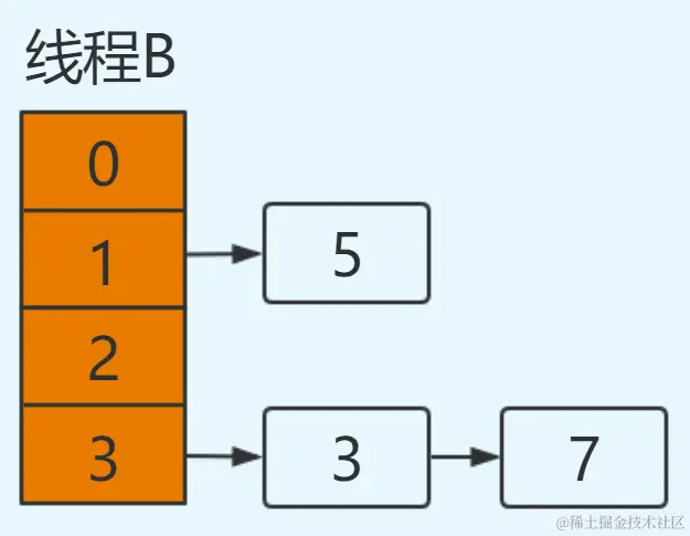 此时线程B已获得CPU时间片,并完成resize操作: