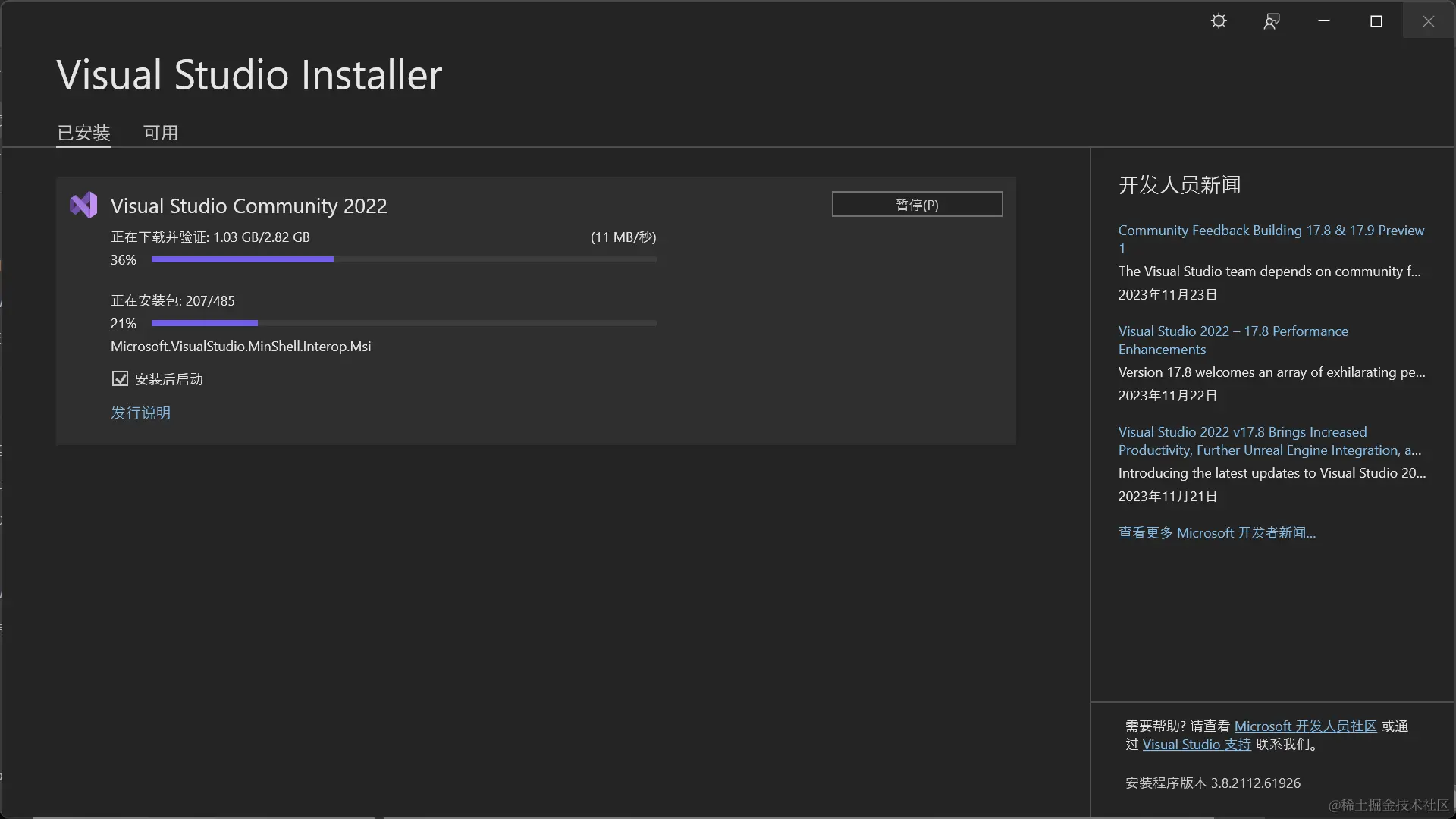 启动即可启动 Visual Studio 2022: