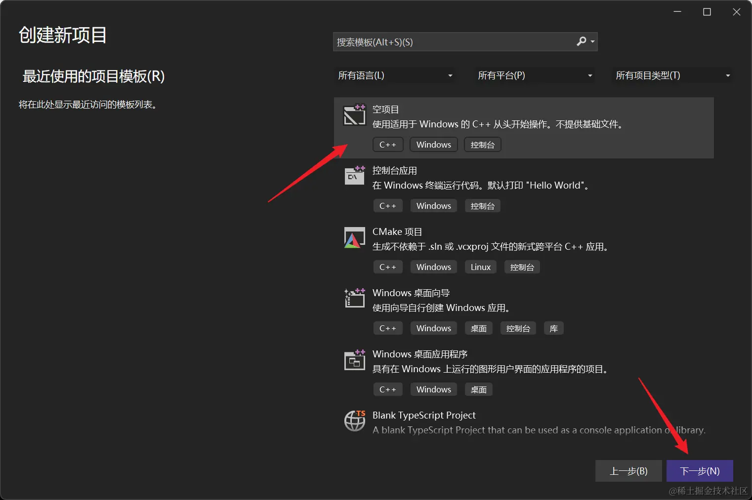 空项目,点击下一步: