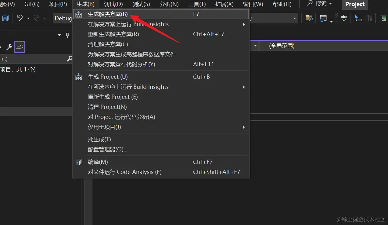 生成--->生成解决方案(B):