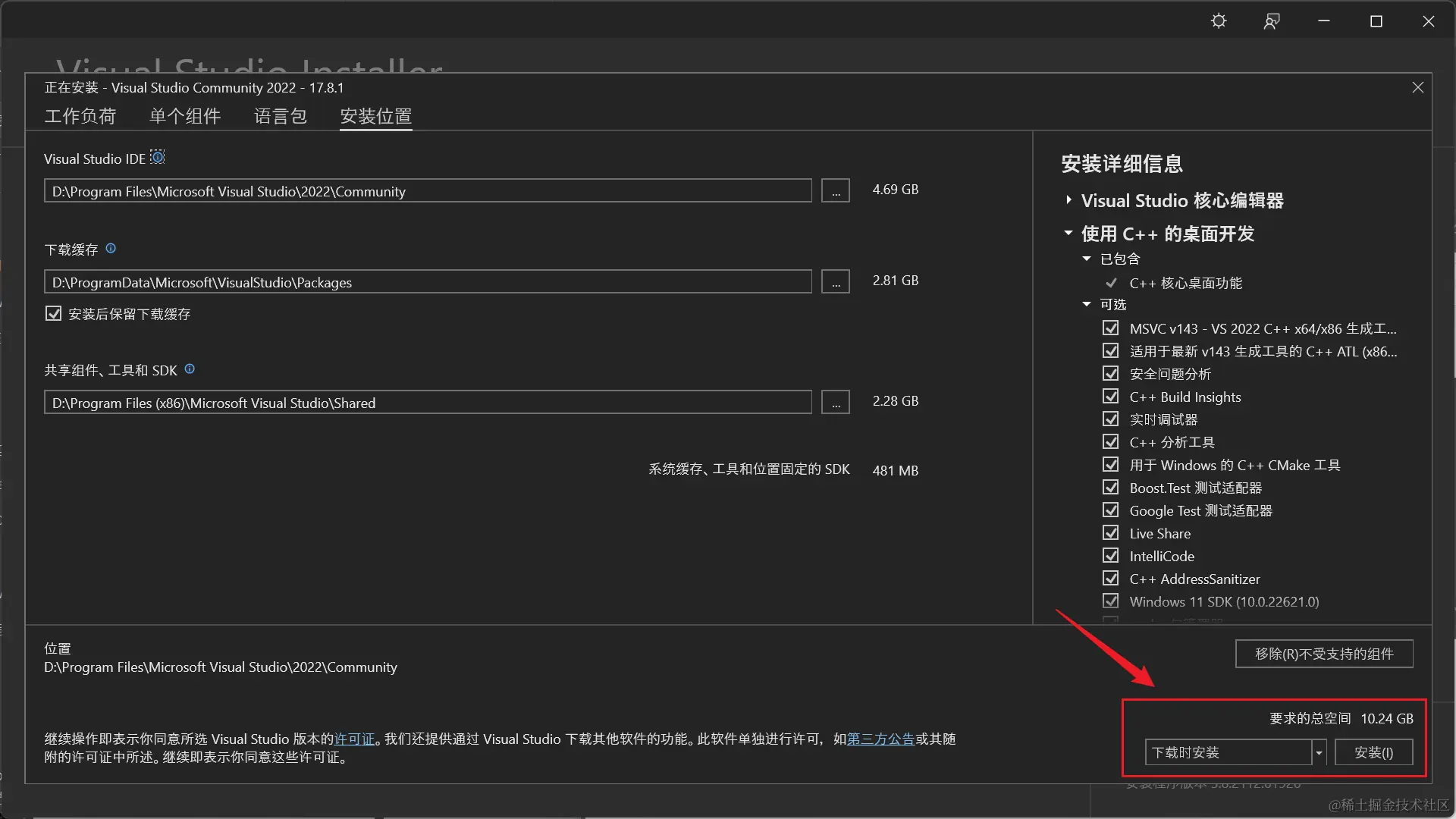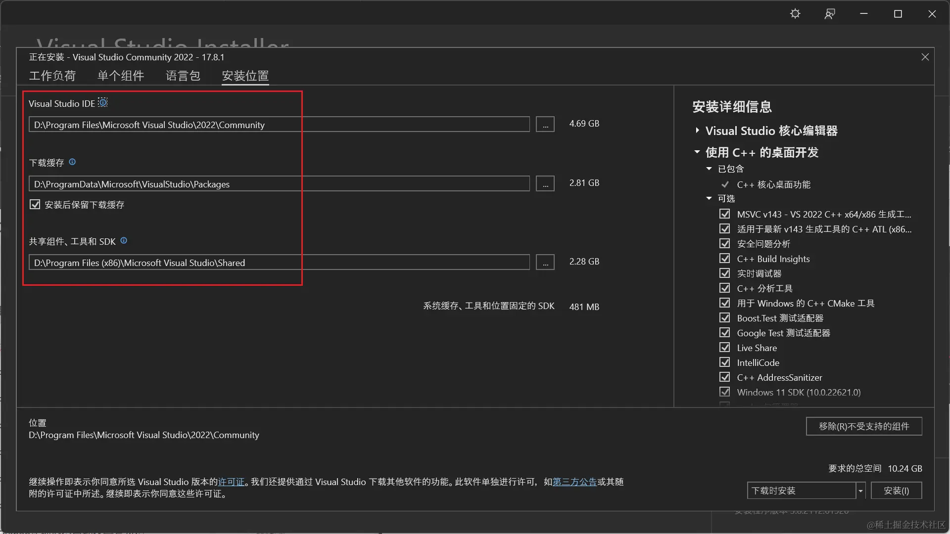 - 可更改安装位置,点击