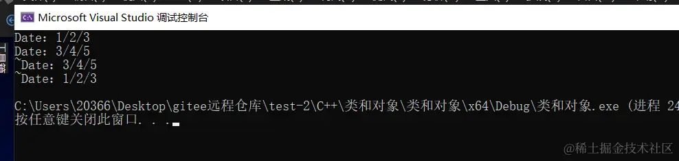 二、函数的返回值使用引用返回 保证了可以连续赋值,d1=d2=d3;从右向左赋值。d2=d3赋值完后,返回了d2,所以d1=d2又可以继续执行。