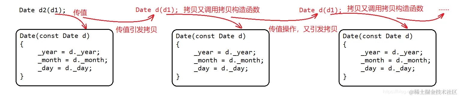 Date6 d3 = d1;//拷贝构造,相当于Date6 d3(d1)