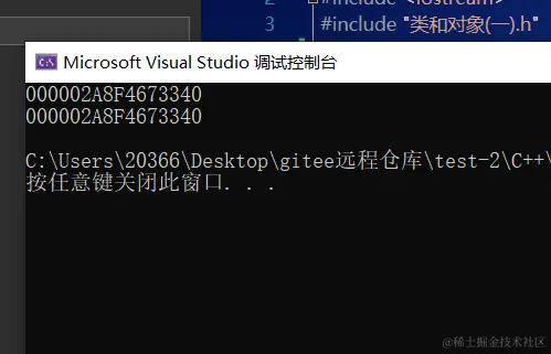 结果打印s1和s2栈空间的地址相同,这就意味着,在创建完s2栈后,我们对s1做的任何操作都会直接影响到s2栈。并且s1和s2的析构函数若释放动态开辟的空间资源的话,会对同一块内存空间释放两次。