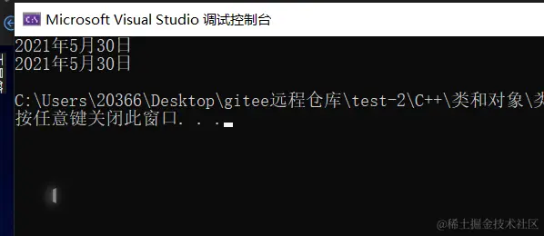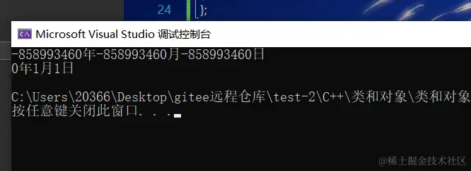 例.如下Date日期类,没有自己写构造函数,而是由编译器生成的默认构造函数来初始化类对象。