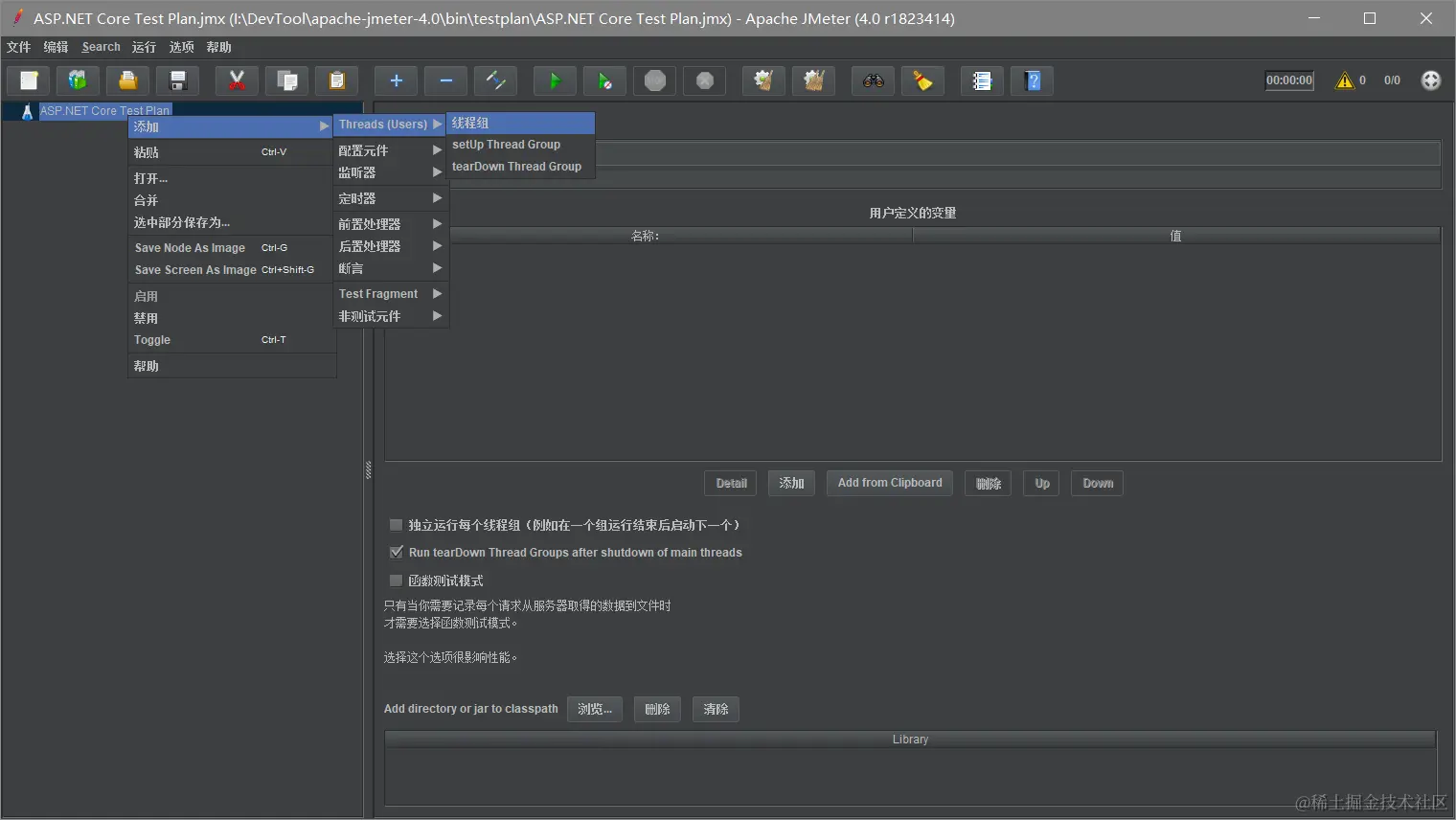 在“测试计划”上右键 【添加】-->【Threads(Users)】-->【线程组】。