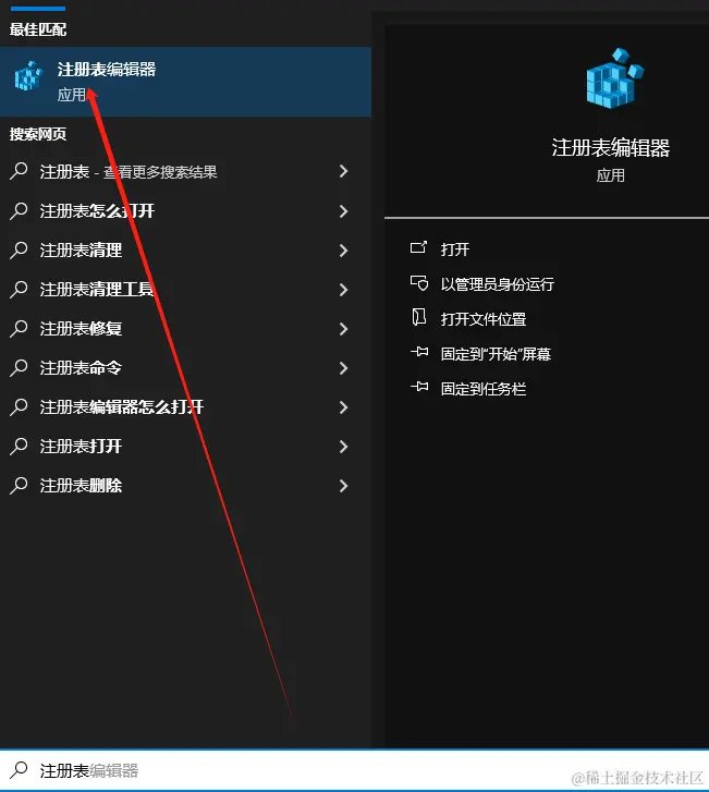 按下Win+Q快捷键,输入注册表, 点击注册表编辑器,就能打开