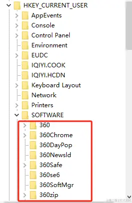 分别进入到HKEY_LOCAL_MACHINE\SOFTWARE 和 HKEY_CURRENT_USER\SOFTWARE 中,删除一些未知程序或者已经卸载的程序