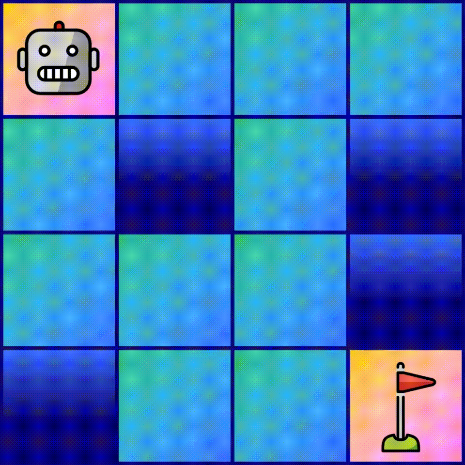 - AI或agent可以执行4种动作:向左移动◀️,向下移动🔽,向右移动▶️,或向上移动🔼。