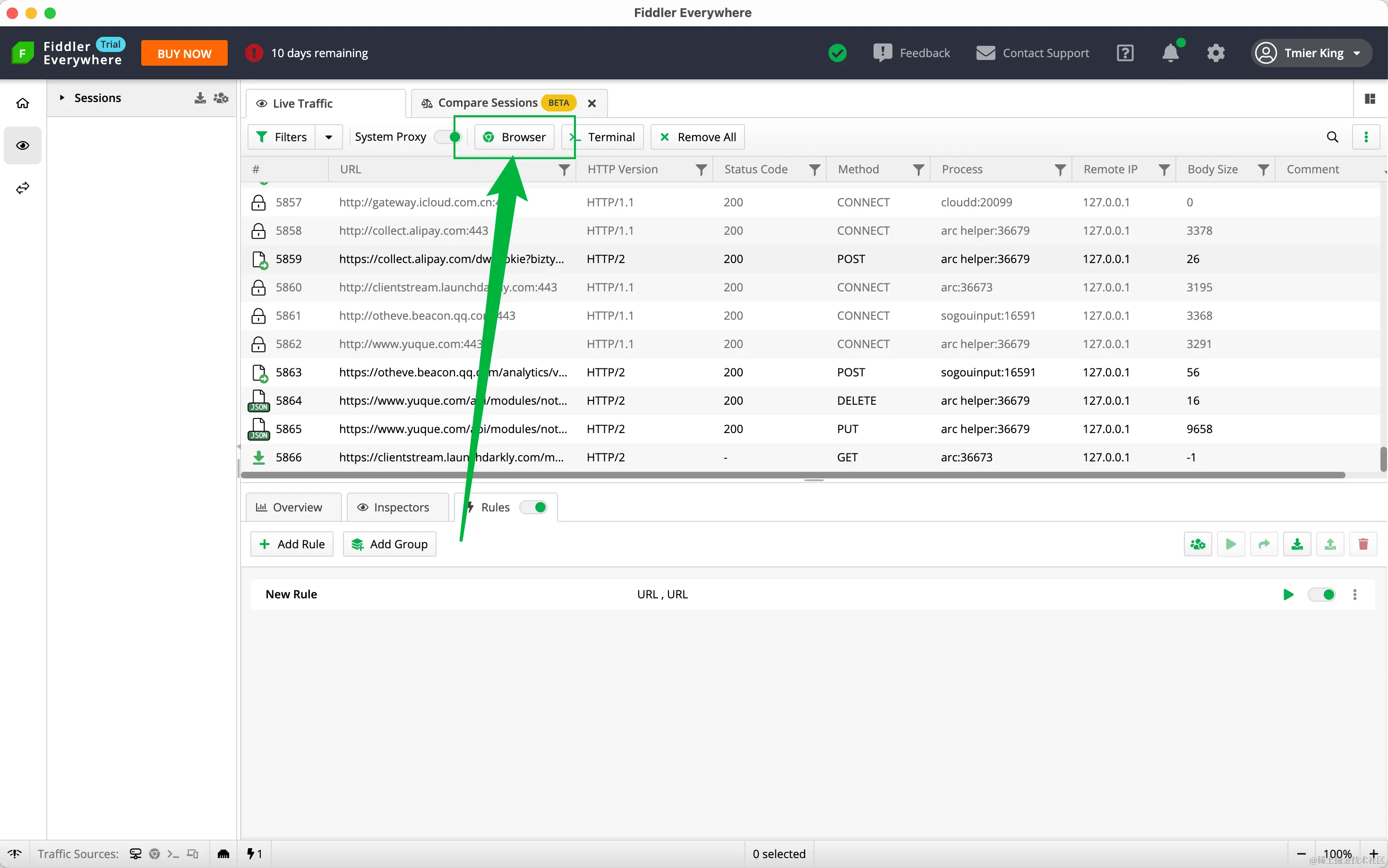 首先下载 Fiddler Everywhere, 下载下来之后注册登录,直到打开下面这个界面