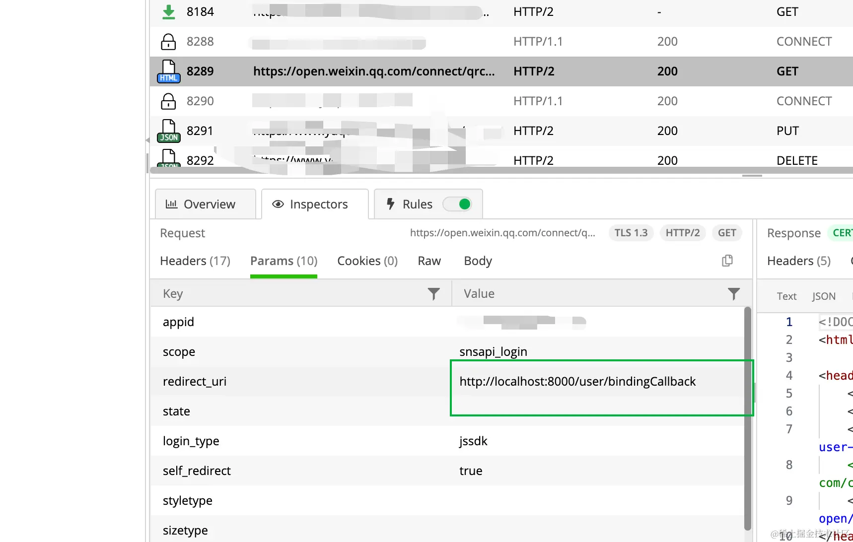 发现 redirect_url参数错误, 看看请求
