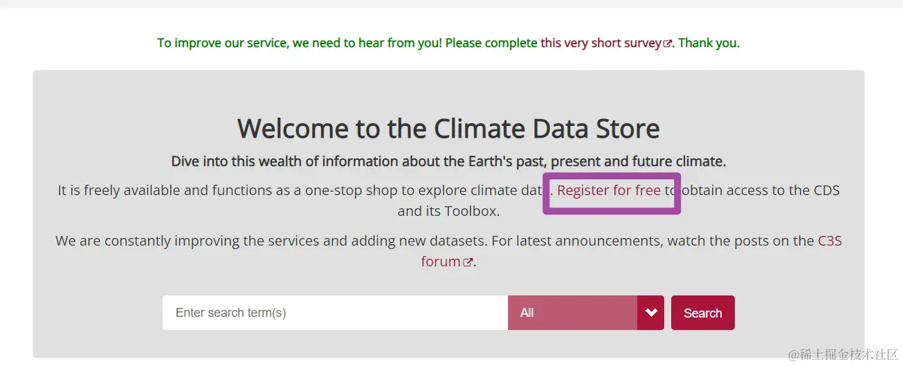首先,我们进入这个网页;这里需要注意,进入这个网页后,首先需要通过如下的超链接,重新注册一下;我感觉这个步骤的意义就是将我们注册好的ERA5官方网站账号再赋一个API权限。